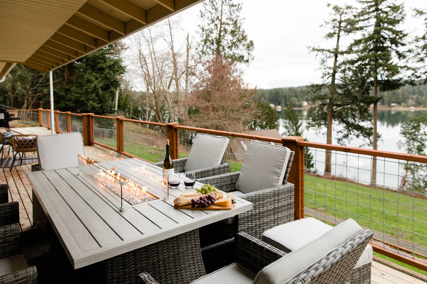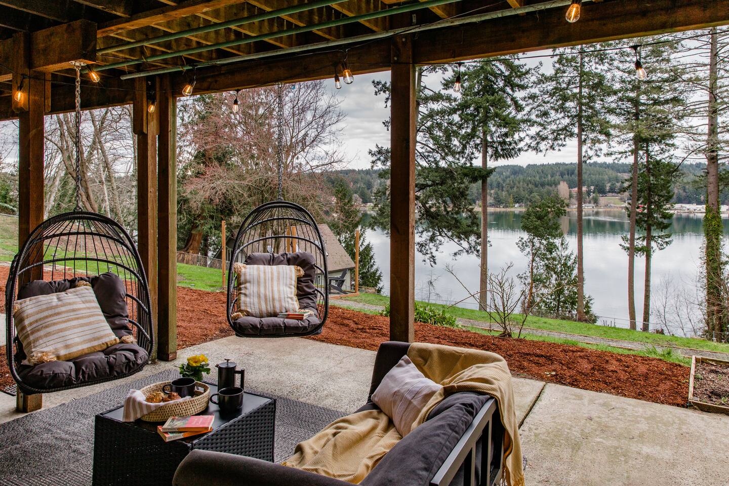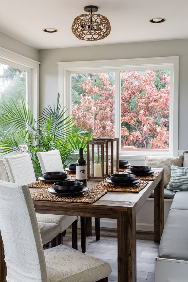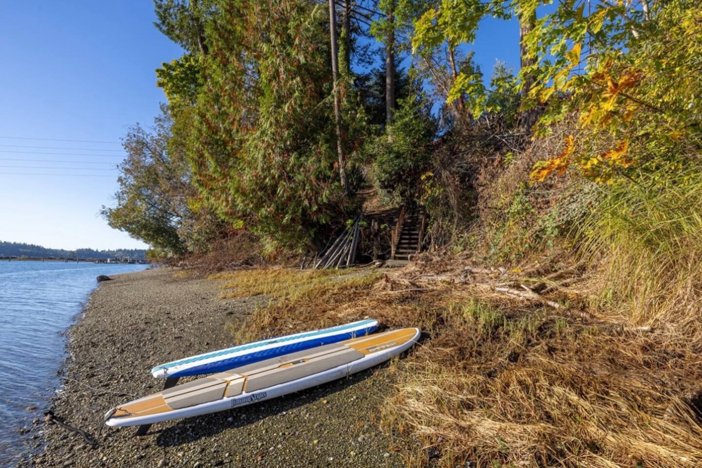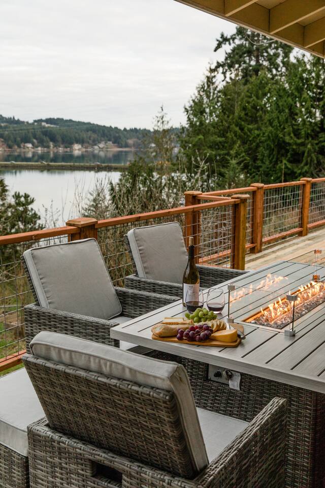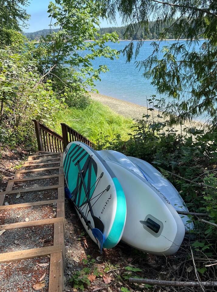 Welcome to Harbor Serenity, by Riveria Stays! Enjoy our luxurious waterfront retreat in Purdy, Gig Harbor, Washington! This expansive 6-bedroom, 3-bathroom Airbnb offers stunning water views and a wealth of amenities for families or large groups seeking an unforgettable escape. Location: Discover the best of Washington's natural beauty from our Airbnb, just a 20-minute drive from Point Defiance Park, one of the state's most beloved destinations. Explore 10 state parks within a 30-minute radius, or take a leisurely 7-minute stroll to the picturesque Purdy sand spit beach. Amazing shopping and dining options in close proximity. 7-minute drive to Target, Albertsons, Home Depot, Costco, and other major retailers. Game Room: Indoors, entertainment abounds in the game room featuring a pool table, arcade games, fireplace and a large TV for movie nights. A curated collection of board games and puzzles ensures endless fun for all ages. We also provide free streaming access to Hulu, Amazon Prime, ESPN+ and Disney. Fireplaces: The Airbnb features two electric fireplaces, both operated by remote control with no need for firewood. Bedrooms: Our professionally designed bedrooms cater to every need, with two king beds, two queen beds, two full beds, two twin beds, and two sleeper couches, one in the living room and other other downstairs in the Game Room. Families with young children will appreciate our dedicated kids' room and thoughtful amenities such as a pack and play, high chair, and baby bath. Deck: Upon arrival, guests are greeted by a spacious deck overlooking the water, perfect for al fresco dining at the large outdoor table or gathering around the gas fire pit for cozy evenings. Fire up the barbecue smoker for delicious outdoor meals while soaking in the panoramic views. Patio: Downstairs, the patio beckons guests to unwind in the hot tub or relax in the cozy seating area while taking in the tranquil ambiance. Hot Tub: The hot tub is a spacious open-seating spa. It features two versions of the unique 3D seat with strategically placed jets that give you the option to comfortably lounge across nearby seats. Or sink into one of the generously jetted captain seats with wrist and neck therapy and take advantage of the powerful Volcano foot jet. Backyard: Wake up to the sight of majestic eagles nesting in your backyard, all while savoring your morning coffee on the expansive deck or 98 feet of waterfront beach. Situated on over half an acre of fully fenced land. The beach is accessible by foot. However, it requires a walk on an incline and may not be suitable for individuals with mobility issues. There are some patches of water and marsh lands due a natural underground spring. Kayak and outdoor activities: For outdoor enthusiasts, a private trail in the backyard leads down to the private access to the beach where guests can launch kayaks, enjoy skipping stones, harvest oysters and clams along the shoreline in front of the property. The availability of clams and oysters is contingent upon seasonal variations and tidal patterns. Kayaking in lagoons offers a serene experience with their tranquil, sheltered waters, ideal for beginners. While weather and tides can affect ease of paddling, lagoons typically offer smoother conditions than open waters. We provide 4 complimentary kayaks and 2 paddle boards along with life jackets. Please note, we may request you to sign a liability waiver, and you assume responsibility for any incidents that may occur while using the kayaks and paddle boards. Please inspect the condition of the items and be mindful of the currents. Understand and respect your limits. Accessibility to the Beach The beach can be reached via a short stroll down a slope with long steps. However, please note that there are no railings, which may make it challenging for individuals with mobility issues. The shoreline is a vibrant natural habitat subject to tidal and seasonal changes, so conditions may differ from photos. At high tide, the water can reach the grassy dunes, covering parts of the rocky beach. As the tide recedes, more of the shoreline becomes accessible. We hope you'll enjoy observing its ever-changing beauty during your stay. Fire Pit: Enjoy evenings around the large fire pit, complete with Adirondack chairs for stargazing or making s’mores. Open and fully-stocked kitchen: This beautifully updated home boasts a living area with luxurious Vinyl Plank flooring and a modern farmhouse kitchen that is sure to ignite your culinary creativity. EV charger: Guests have access to universal EV charging station in the driveway. Location: Situated in the serene surroundings of Gig Harbor, our Airbnb offers the perfect blend of relaxation and adventure. Book your stay today and experience the ultimate waterfront getaway! Workstation: 1 bedroom is equipped with a monitor, webcam, keyboard, and mouse for your convenience.