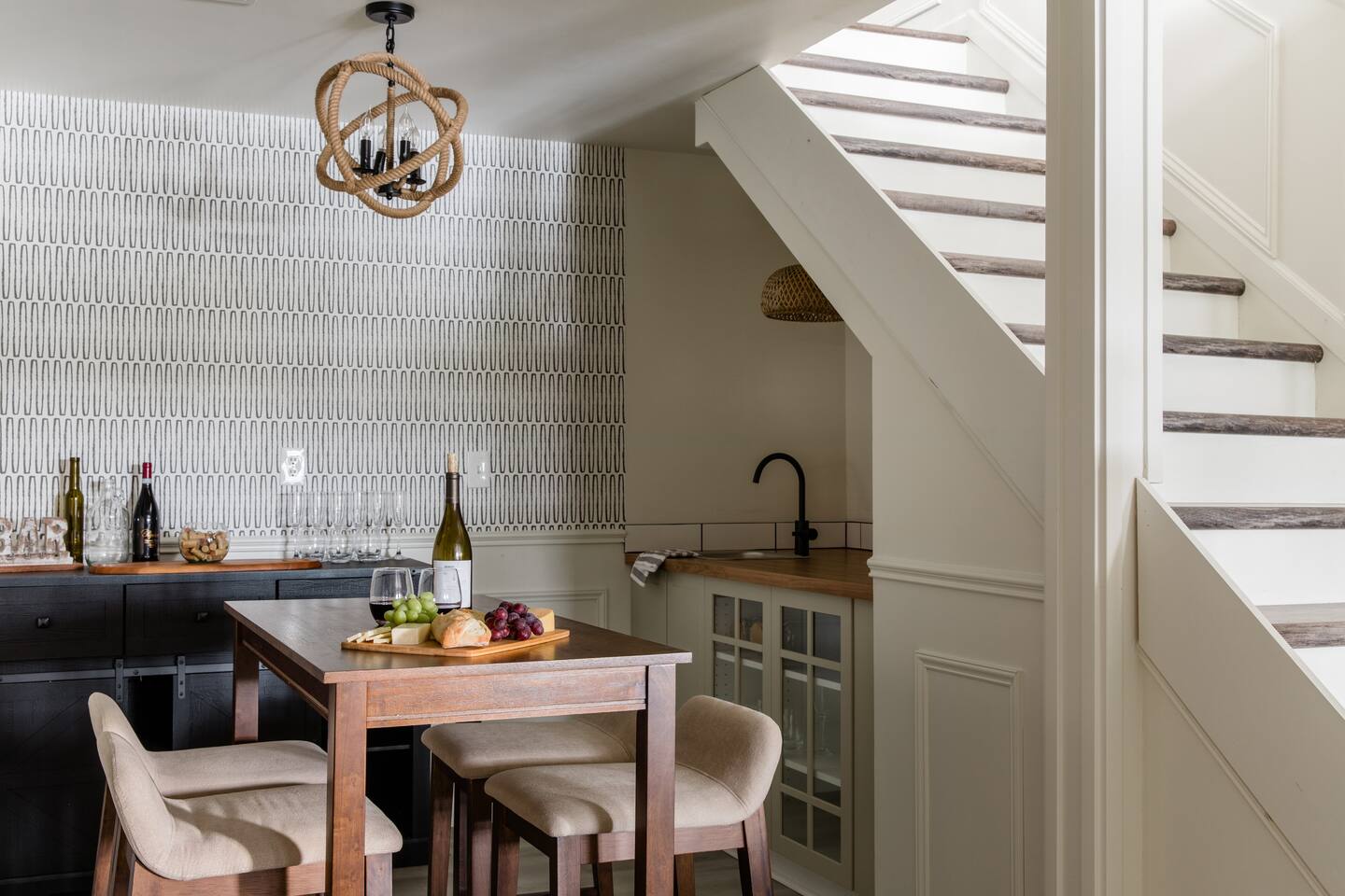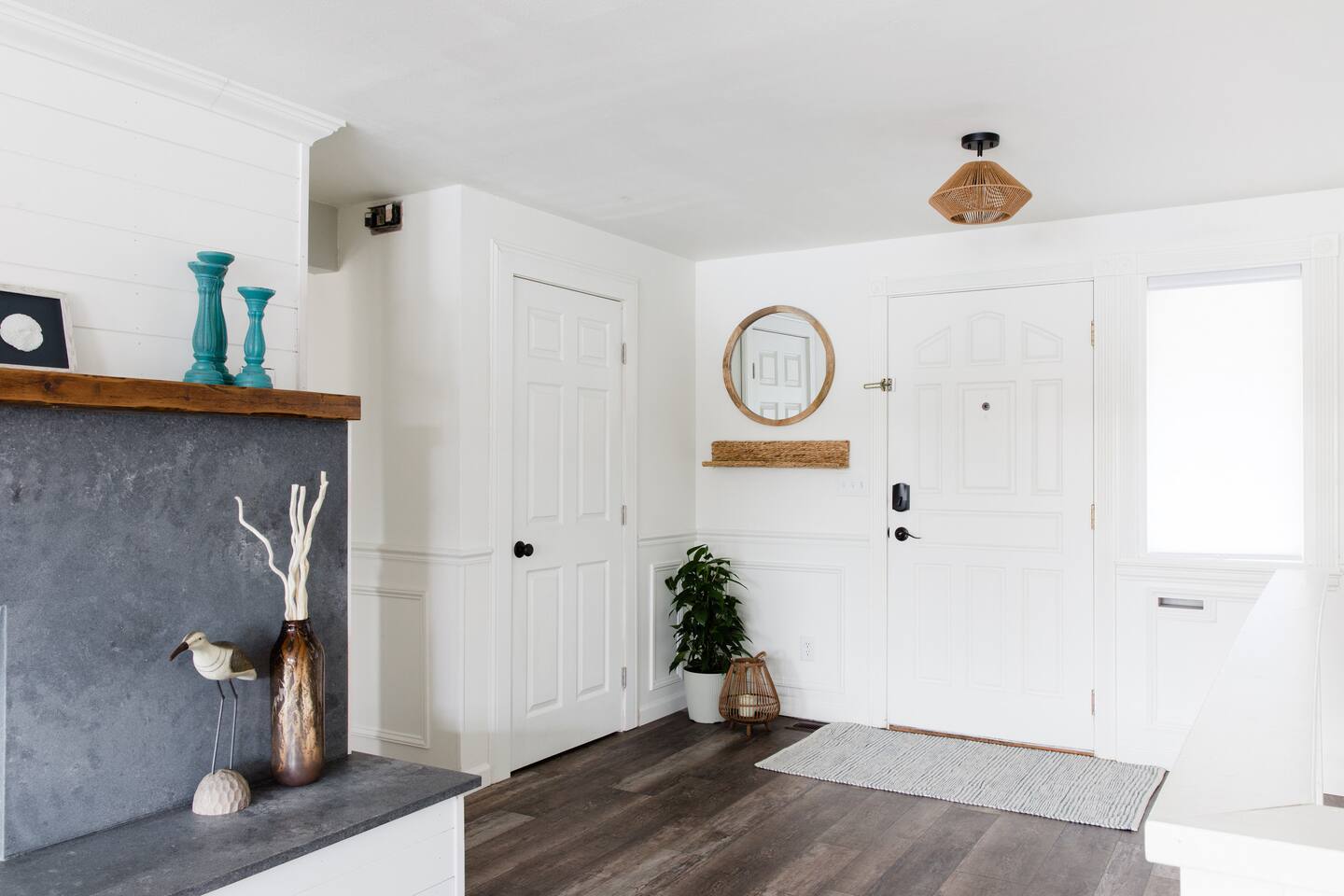 The number of guests in the reservation represents the maximum allowed on the property at any time, including daytime visits. To maintain a peaceful atmosphere, parties or events are not permitted without prior approval. Reservations may be declined based on guests' lack of reviews or negative past ratings. The primary guest making the reservation must be at least 21 years old. For heat, please use the thermostat to set the desired temperature and use remote controls for the fire places. For a fun fire ambiance, use the outdoor fire pit. For security purposes, exterior cameras monitor the front of the home, entry door, and driveway, while interior spaces and outdoor relaxation areas remain private. As a courtesy to all guests, please remove shoes upon entering the house. Smoking is strictly prohibited inside the house and on the deck/patio areas. Please use designated outdoor smoking areas and dispose of cigarette butts properly. Noise and smoking are monitored. Small, well-behaved dogs are permitted for an additional pet fee of $50. Please inquire about our pet policy when making your reservation. Parking is available for up to 5 cars; please note that street parking is not permitted.